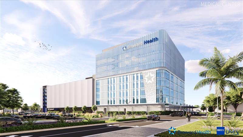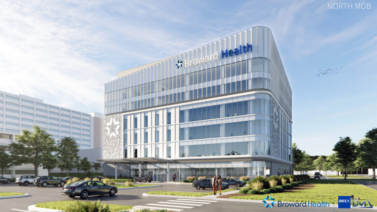 The Broward Health North MOB broke ground on March 16, 2026 and will be a 114,000-square-foot, six-story facility featuring 75 exam rooms, with capacity to expand to 123. The development will support cardiovascular care, neuroscience, and orthopedics. Key project partners include The Beck Group, DMZ Architects, Newmark, DPR Construction, and Centurion.